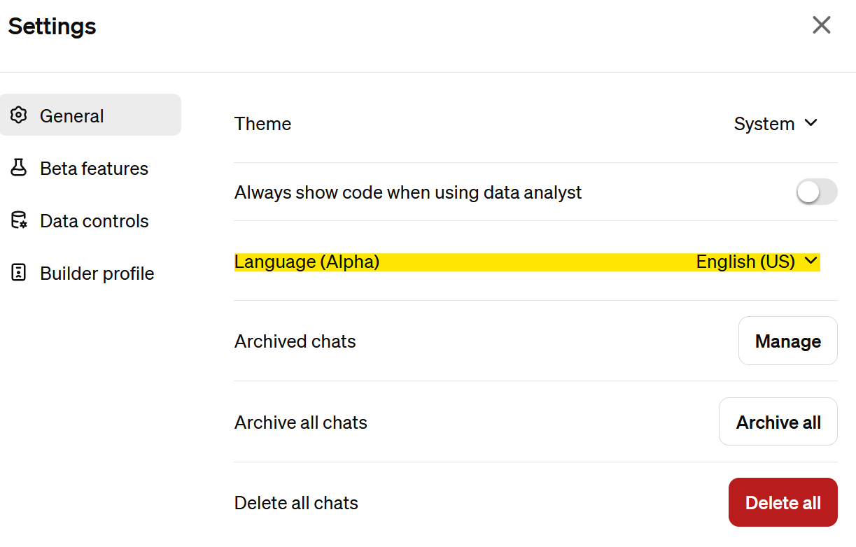 In your GPT settings, set the Language (Alpha) section to “English (US)”, see screenshot below.